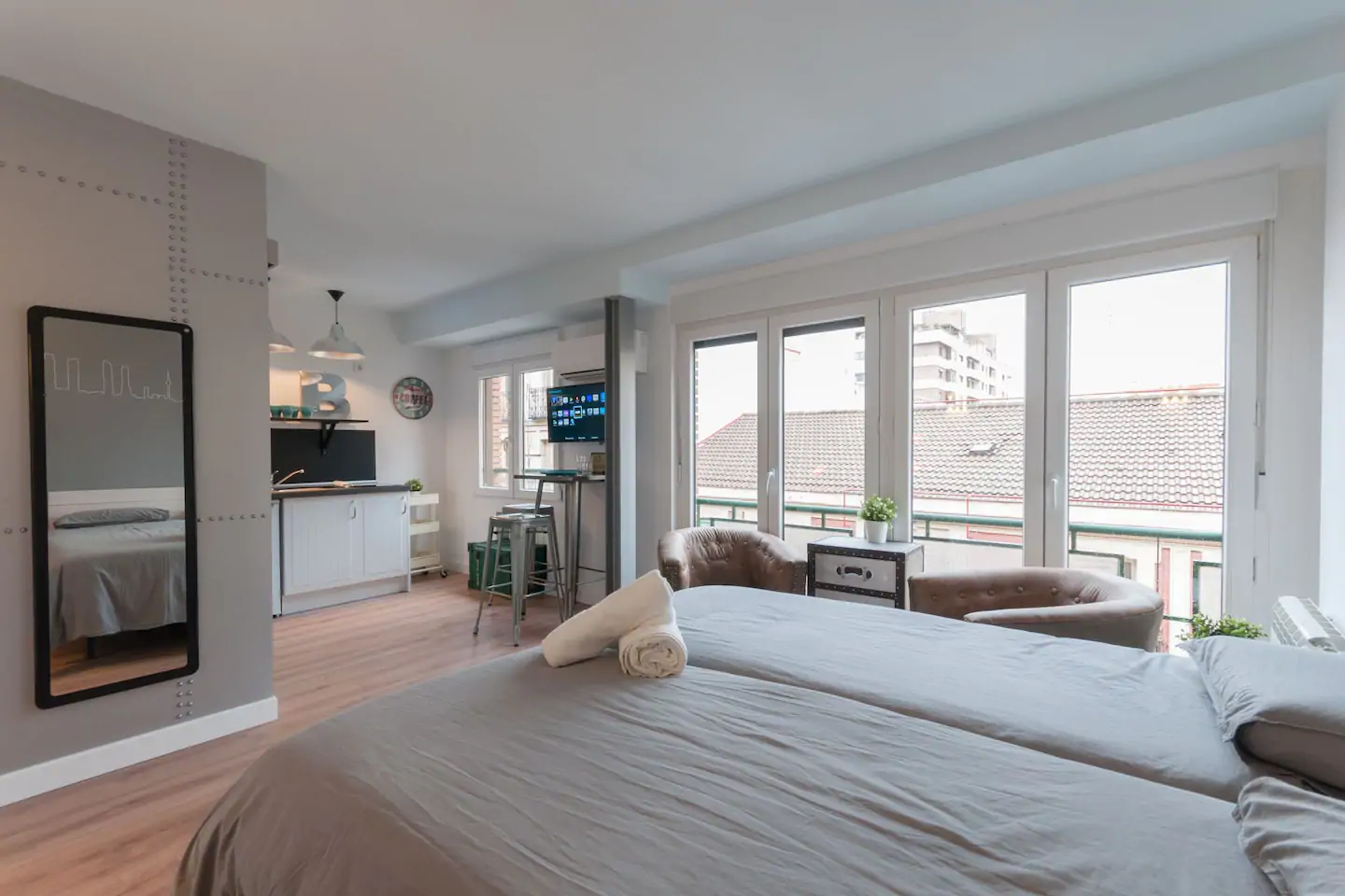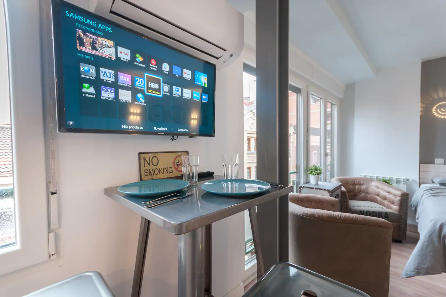 Cozy and bright apartment in the center of Madrid, next to Atocha Station. It features high-speed Wi-Fi, air conditioning, heating, a Smart TV, a refrigerator, and a hairdryer.