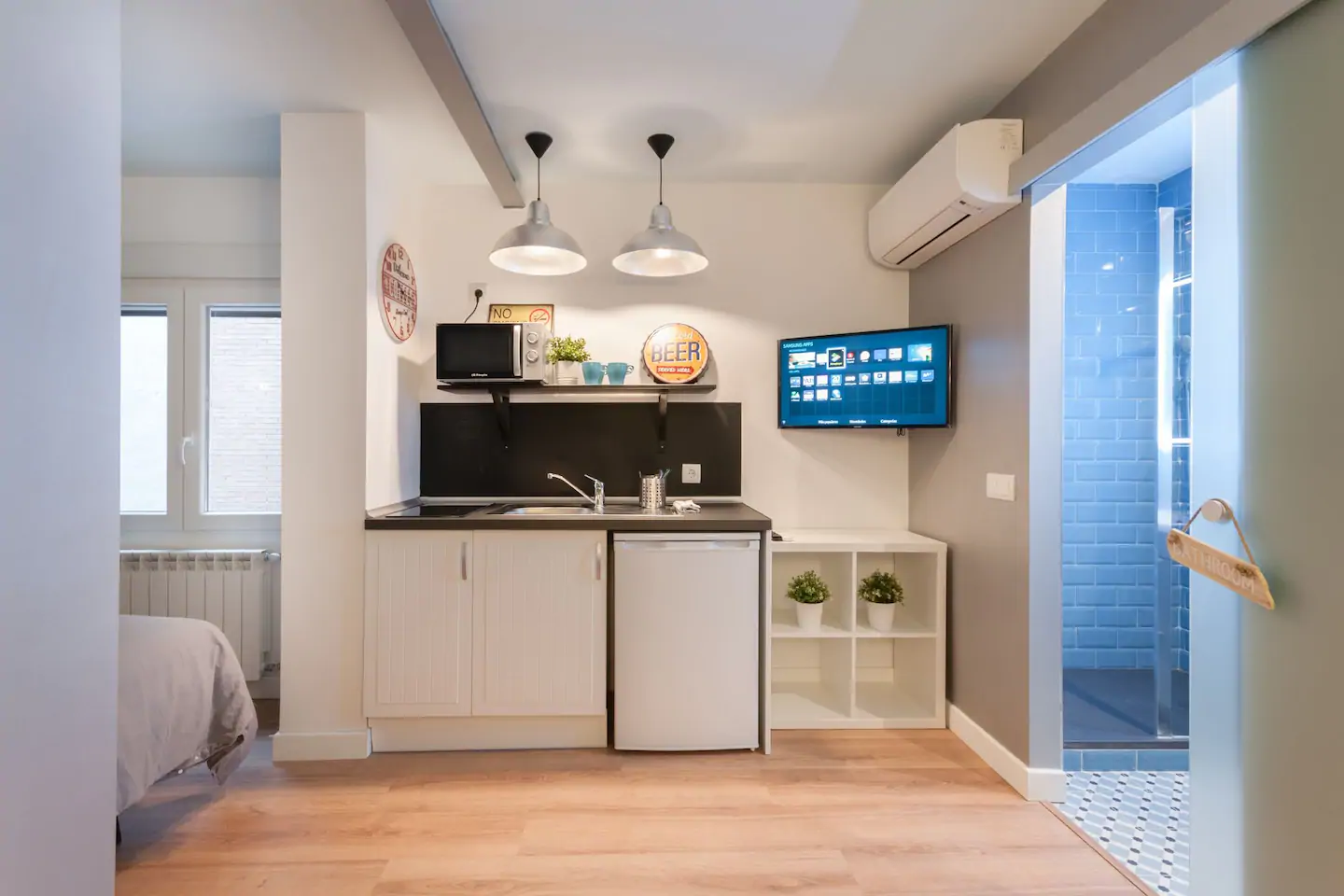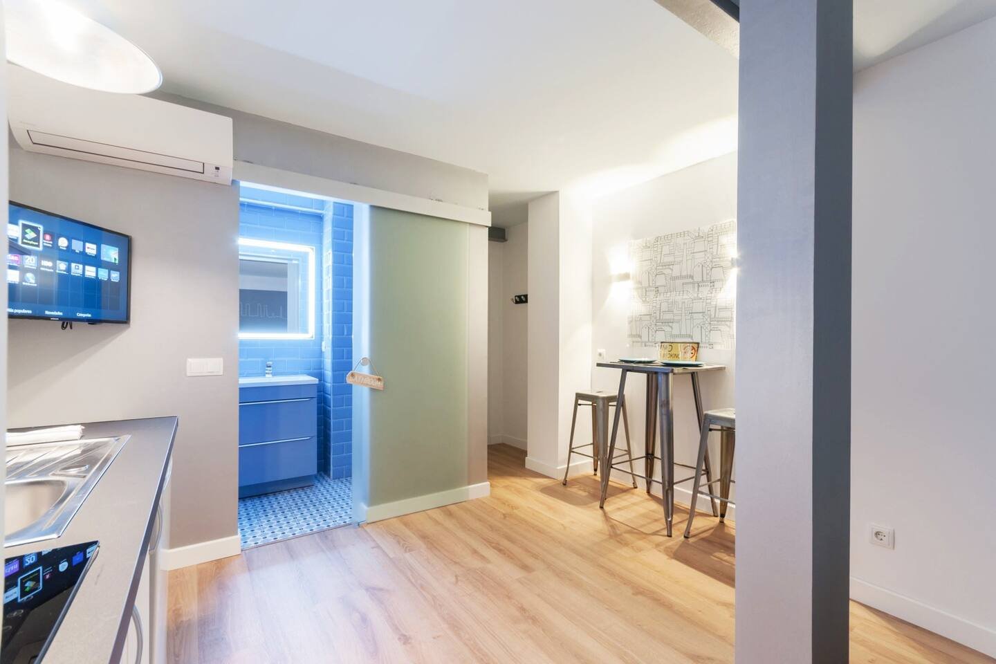 Cozy and bright studio in the center of Madrid, next to Atocha. It has high-speed WiFi, air conditioning, heating, Smart TV, refrigerator, hairdryer. Located next to Atocha Station, Reina Sofia and Retiro Park. Terraces, cafes, theaters, museums… in the same neighborhood, you can explore the entire center of Madrid on foot without needing any other type of transport. You will be in the heart of Madrid, but you will not hear street noise. The entire studio is new, with the best qualities and soundproofing from the outside. Buses, 3 metro lines. Reina Sofia Museum, Prado Museum and Retiro Park are 5 minutes away. Plaza Mayor, Sol and Gran Via are 10 minutes away, also close to the Royal Palace, San Miguel Market, Almudena Cathedral, Atocha train station, and the entire city center. Nearby there are several supermarkets, the Cebada market, fruit shops, and bars. La Latina and Lavapies, historic neighborhoods, are characterized by their bohemian, artistic atmosphere and wide variety of tapas restaurants, pintxos, and cocktail bars. The neighborhood has a great atmosphere and is safe. The apartment is on the third floor with an elevator and is very bright and quiet. It has Climalit acoustic double-glazed windows. Sheets and towels are included, as well as bed linens, a microwave, toaster, coffee maker, hairdryer, induction stovetop, refrigerator, dishes, and everything you need for a comfortable stay. You’ll feel right at home!